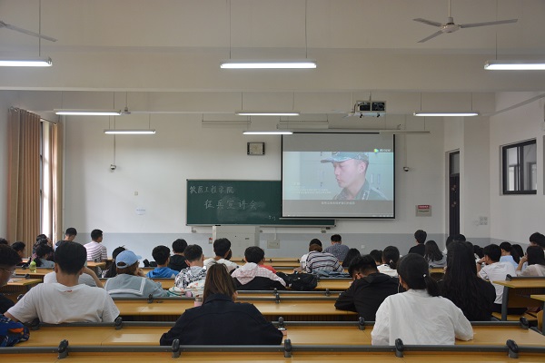 会议伊始,陈翔传达了禁漫 关于2019年兵役登记和普通义务兵征兵事项有关通知,从兵役登记对象、登记时间及信息、征兵对象、应征入伍条件等4个方面为与会人员进行详细阐述。随后,他为参会人员介绍了《中华人民共和国兵役法》的相关条例,鼓励符合条件的学生积极报名,以向上之姿成热血青春。之后,禁漫 退役学生常腾上台,向与会学生分享自己的参军经历与感悟收获。最后,与会人员一同观看了《2019年征兵宣传片》。