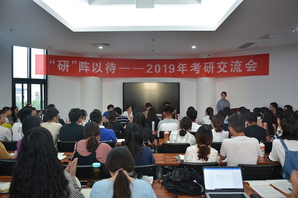 于实验楼北530会议室举行了“研”阵以待——2019年考研交流会,邀请到2015级考入华中农业大学的动物科学2班郭凯、考入兰州兽医院的动物医学4班许凡、考入郑州大学的生物工程1班范瑞锋和考入南京农业大学的动物营养1班张真到场分享考研经验。2016级、2017级有考研意向的学生参加了此次交流会。