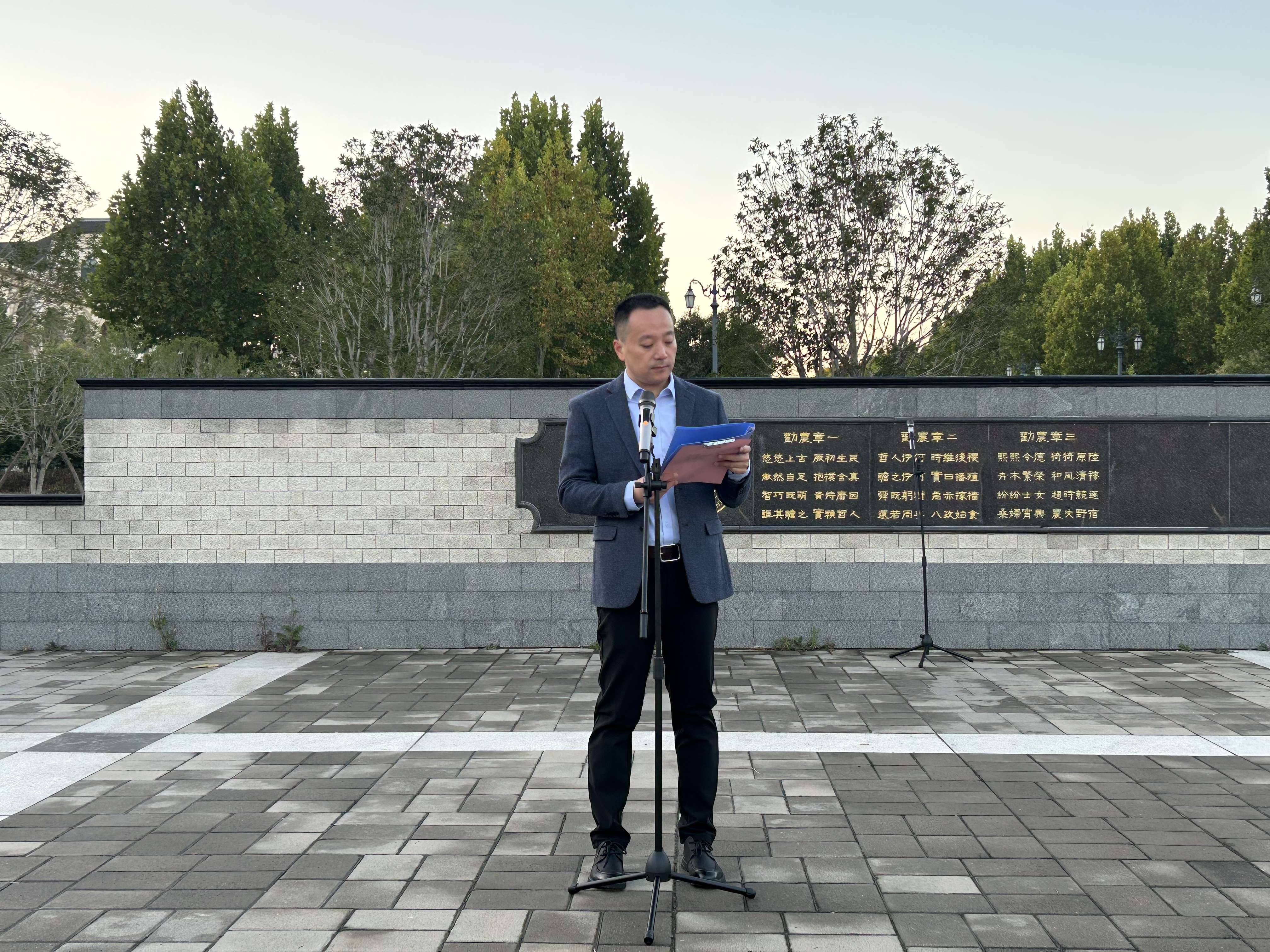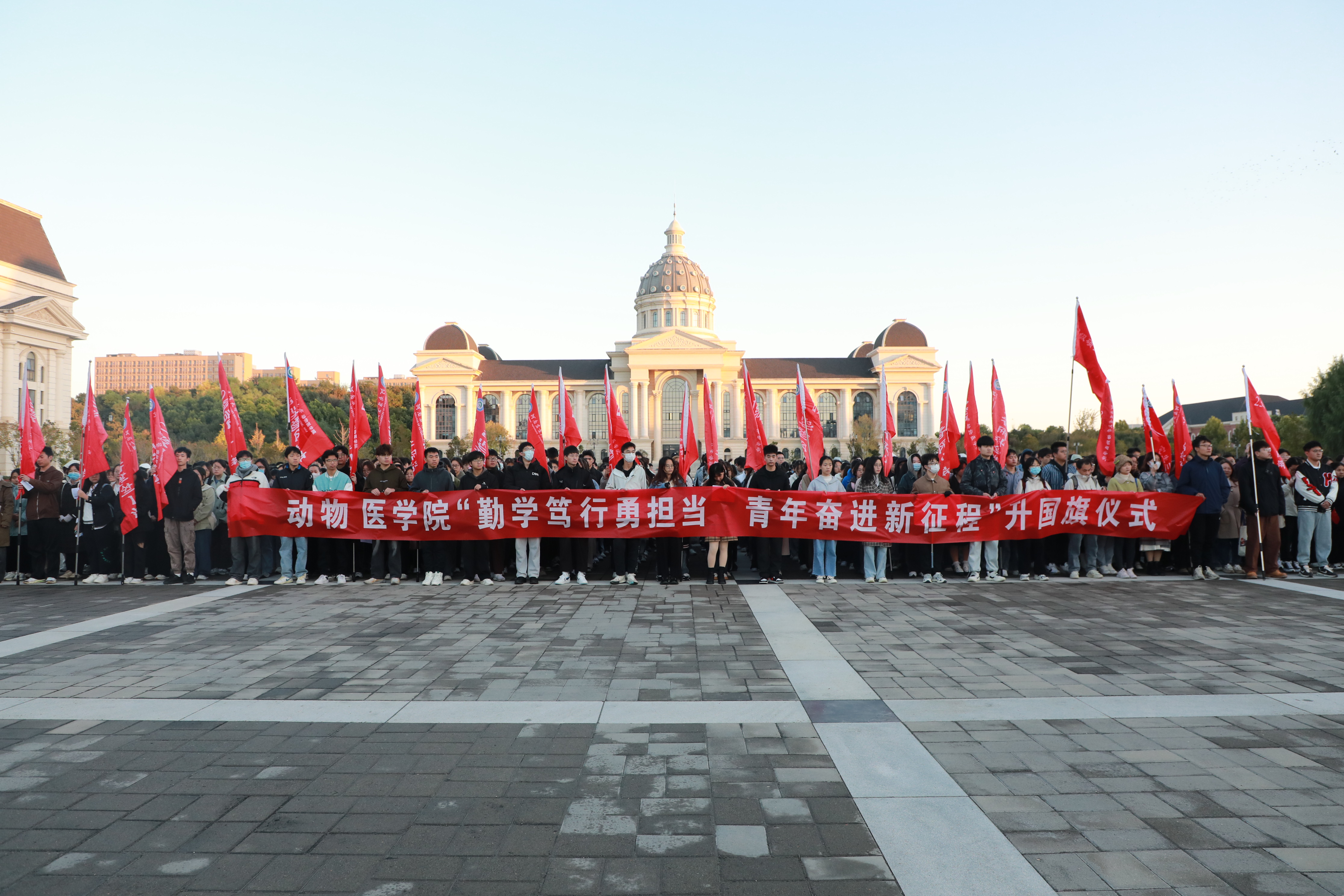 院党委书记廖仲磊发表国旗下讲话。他指出,当今时代是充满机遇与挑战的时代,是世界百年未有之大变局的时代,青年一代肩负重大使命,并对同学们提出四点希望:一是有理想,定方向,始终坚定不移听党话、跟党走,坚定理想信念,厚植家国情怀;二是敢担当,促作为,发扬不畏艰险敢为人先的改革精神,做新时代敢担当的好青年;三是能吃苦,为奉献,在吃苦中砥砺德行、锤炼本领,在奉献中彰显青春底色;四是肯奋斗,彰底色,在接续奋斗中将中华民族伟大复兴的中国梦变为现实。