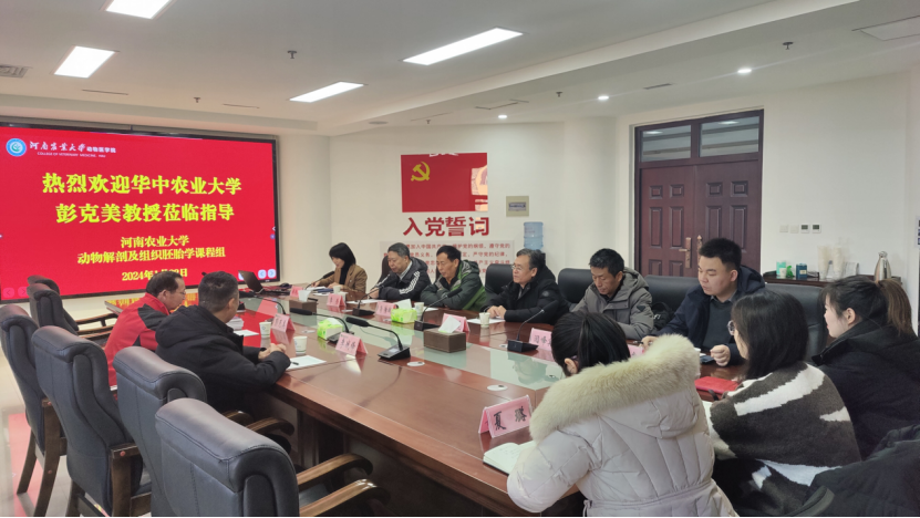 1月22日上午,在第一实验楼北430会议室,华中农业大学彭克美教授为动物解剖与组织胚胎学课程组10余名教师作题为“致力形态科学,培育优秀人才”的专题报告,会议由基础兽医系主任商艳红主持。