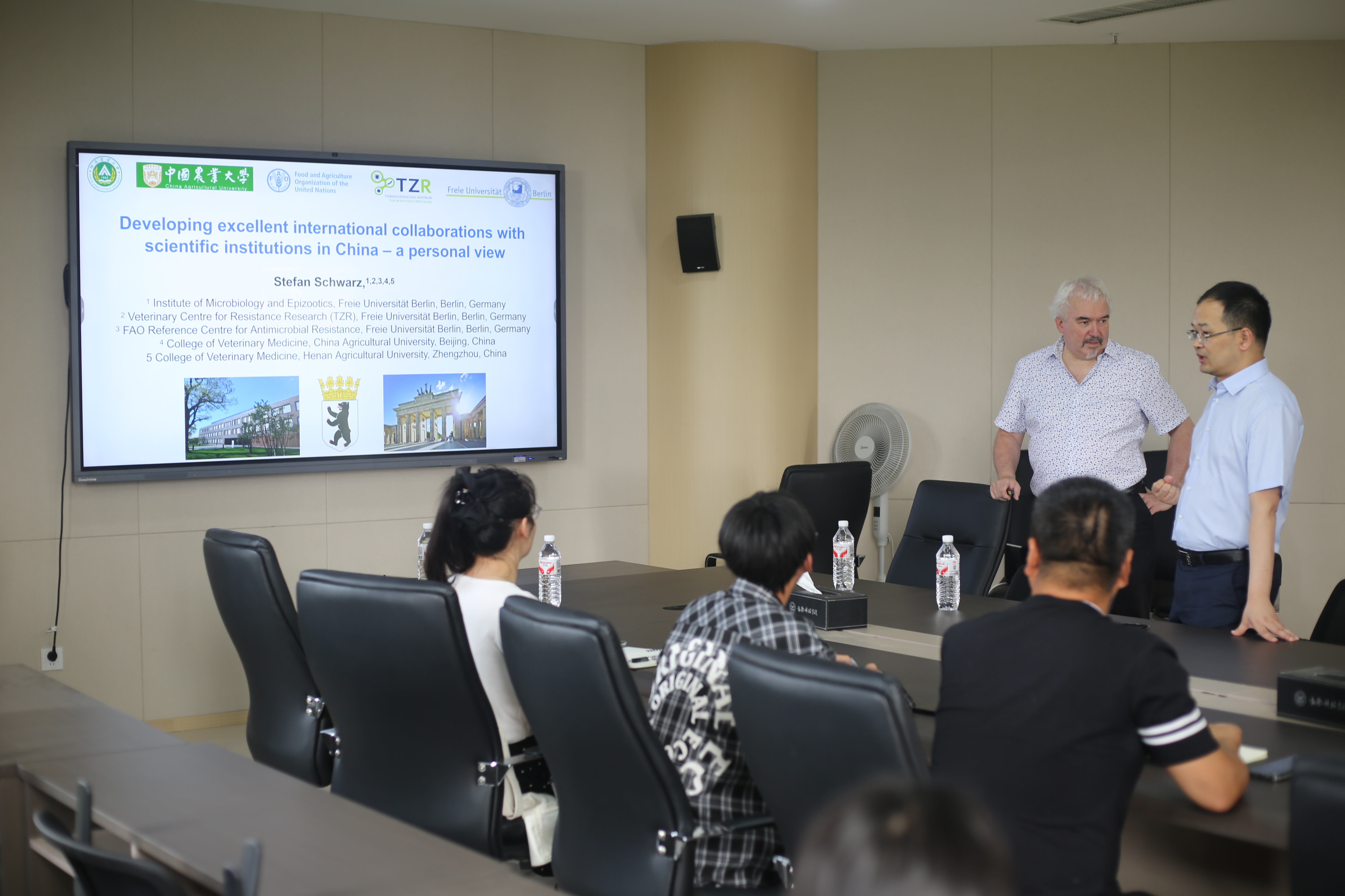 在报告会上,Stefan Schwarz院士重点讲述了其与禁漫 、中国农业大学、中国农业科学院哈尔滨兽医研究所、中国农业科学院上海兽医研究所等机构开展的国际合作。通过分享具体合作案例,他指出,在最近15年内,其与中国科研工作者共同发表100余篇研究论文、1部专著、5个专著章节。他还分析了当前国际科研合作面临的机遇与挑战,指出,参加国际会议、双方互访、共同主持项目是建立长期稳定国际合作的重要举措。