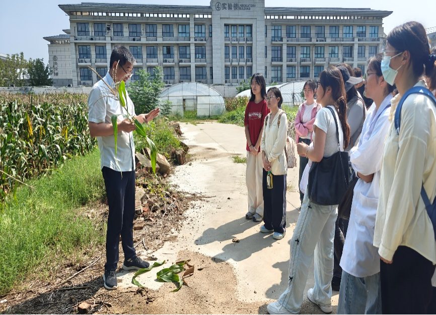 在即将收获的玉米田边,李和平以不同的调制方法讲授青饲料、青贮饲料、粗饲料的区别及营养特性,不同饲料在养殖中使用时注意事项,加深了同学们对专业知识的理解。