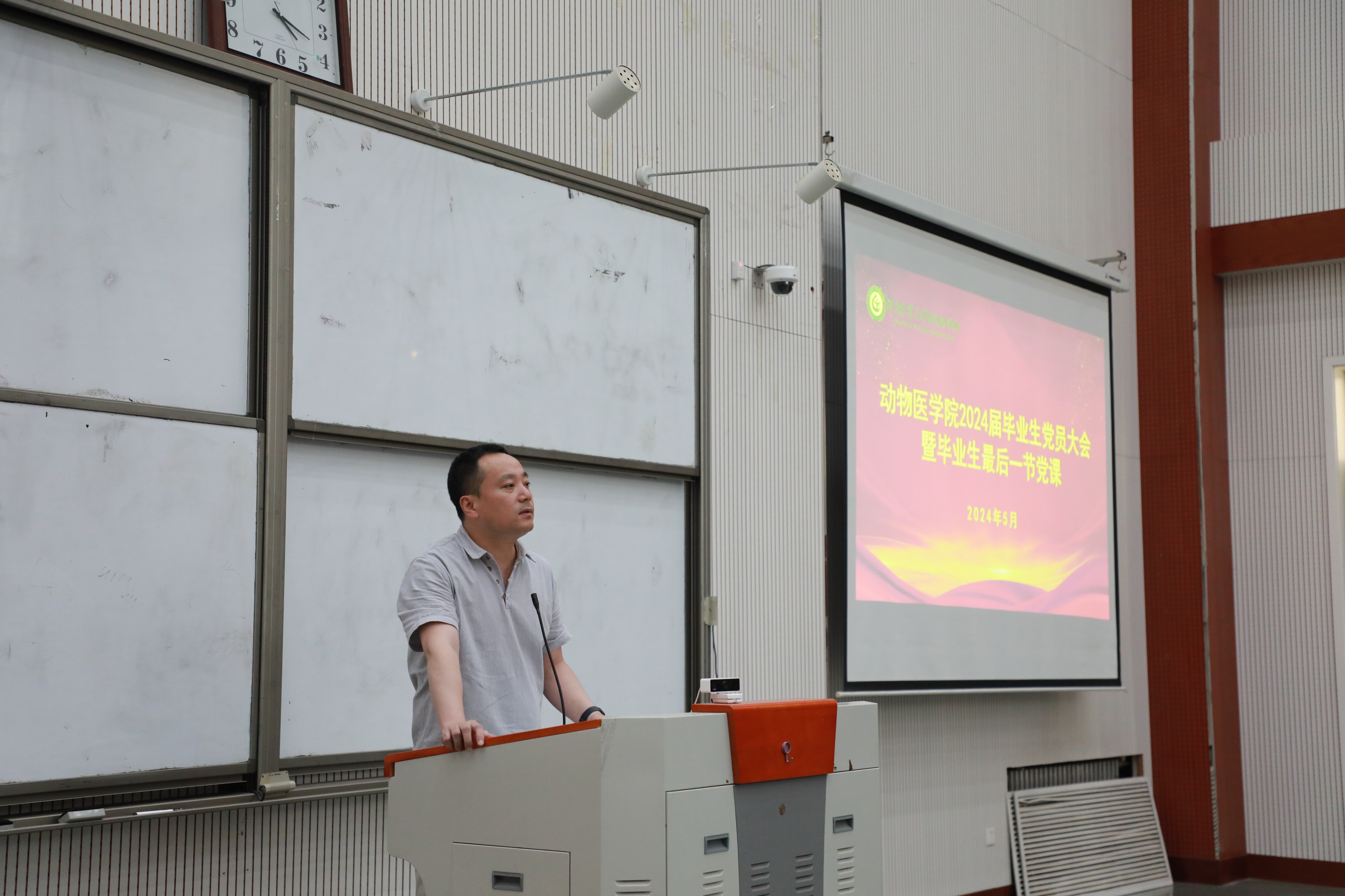 会上,杜家方指出,中国共产党的奋斗历程中,农大人始终与党和国家的发展同向同行,在国家和民族危难之际挺身而出,在奋进之中奋发图强,在振兴之时辛勤奉献。毕业是人生道路上的新起点,如何走好新的长征路,是所有毕业生必须认真思考和回答的问题。他对毕业生党员提出了三点要求,一是要始终坚定理想信念,自觉践行初心使命;二是继承光荣革命传统,积极弘扬动医精神;三是要刻苦练就过硬本领,积极投身强国伟业。希望大家开拓创新、砥砺奋进,努力成为社会主义现代化强国的优秀建设者,勇敢地肩负起历史使命,用一生为国工作奉献、为党增光添彩。
