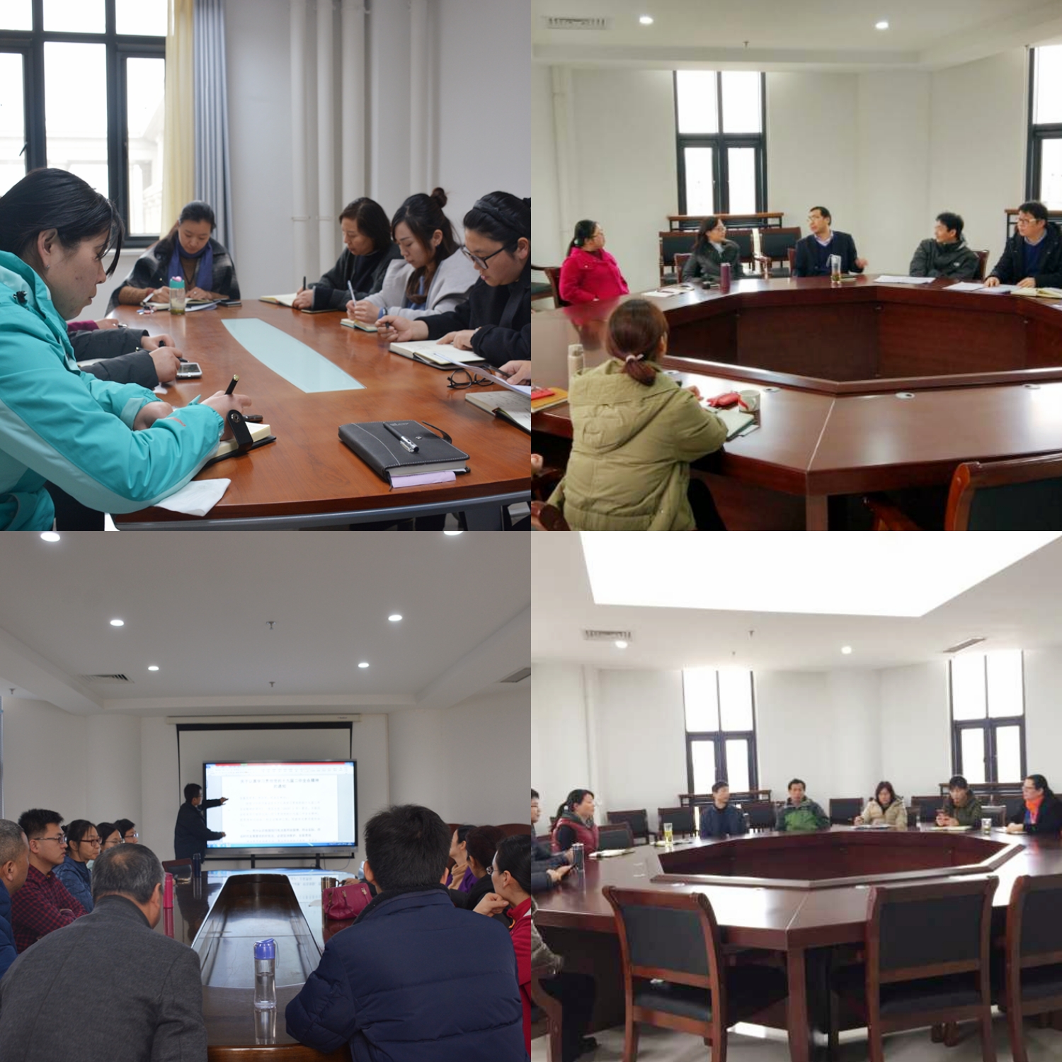 全体教师、学生党支部分头集中学习党的十九届二中全会精神、党的十九届三中全会公报以及学校党的十九大精神专题研讨班会议精神。