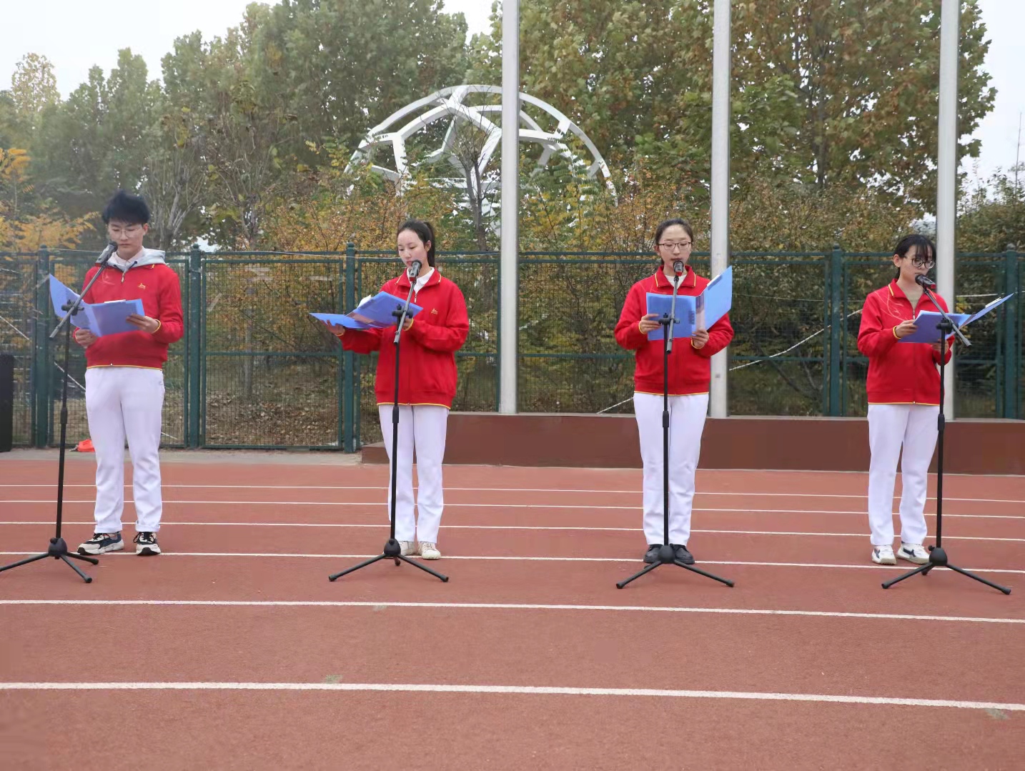 于龙子湖校区田径场举行“我与祖国共奋进”升国旗仪式,学院领导老师及全体学生参加升旗仪式。升旗仪式由院党委副书记王照兰主持。