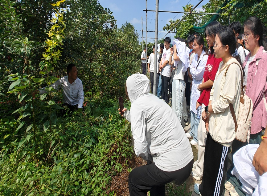 为培养同学们对农艺知识的兴趣,李和平专门邀请园艺学院果蔬基地杨作军老师在现场讲解和演示了果树的修剪、拉枝、嫁接、施肥等管理要点,使同学们深刻体验“农艺创造美好生活”,加深知农爱农的情怀意识。
