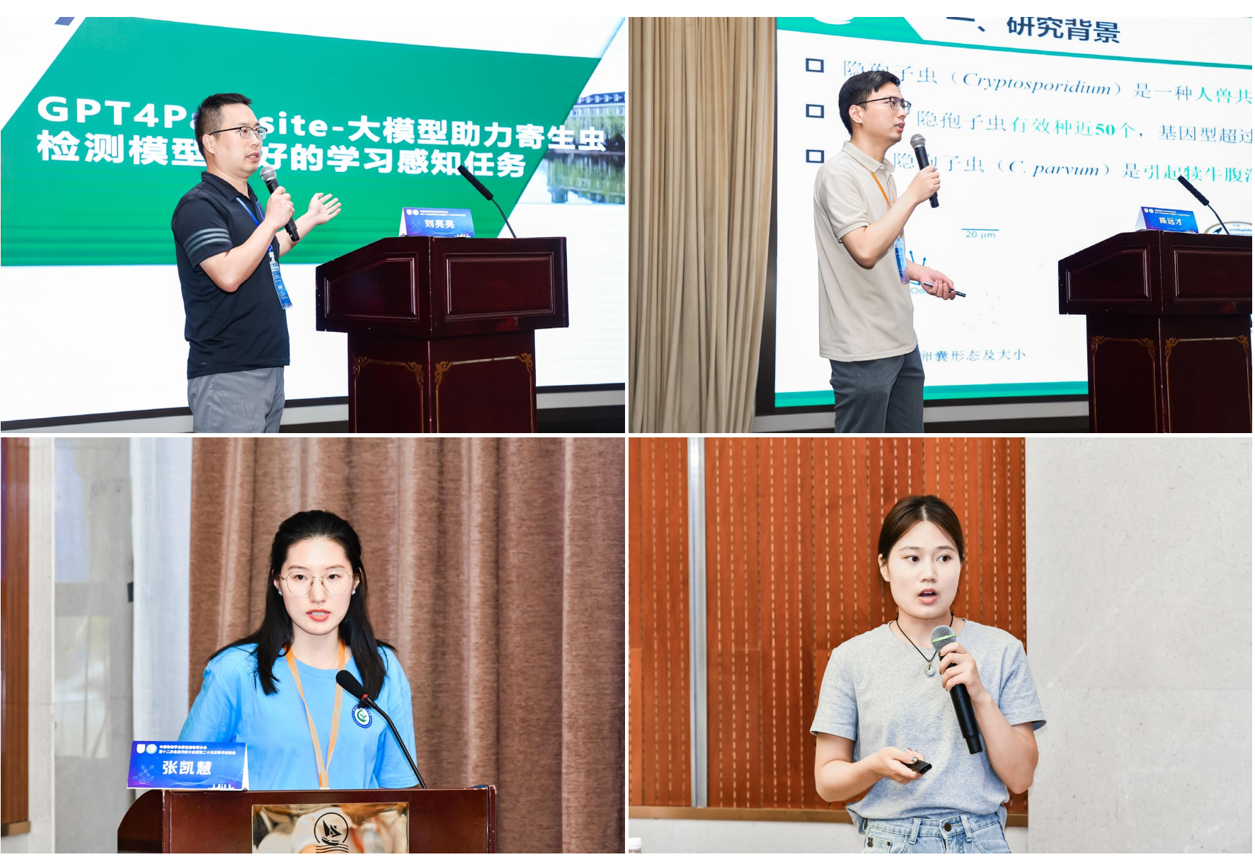 王荣军教授、刘亮亮教授、陈远才博士、张凯慧博士生分别在大会和分会场做了学术报告,单卵囊基因组学技术和原虫基因组分析、智能兽医检测动物寄生虫感染方面的研究,引起与会者的较大兴趣。