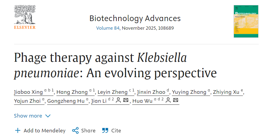 KP是世卫组织重点关注的“ESKAPE”病原体之一,其高毒力KP(hvKP)具有高度侵袭性,可引发人肝、肺脓肿及神经、泌尿系统感染,亦能在兽医临床造成严重感染。近年来全球范围内 hvKP 感染病例日益增多且出现广泛耐药表型(MDR-KP),WHO多次警示其潜在的全球健康威胁。寻找新的抗菌策略,成为国际学界亟需解决的重大问题,而噬菌体是最具潜力的替代抗生素方案之一,因其优越特点为抗多重耐药菌感染带来新希望。DOI: 10.1016/j.biotechadv.2025.108689