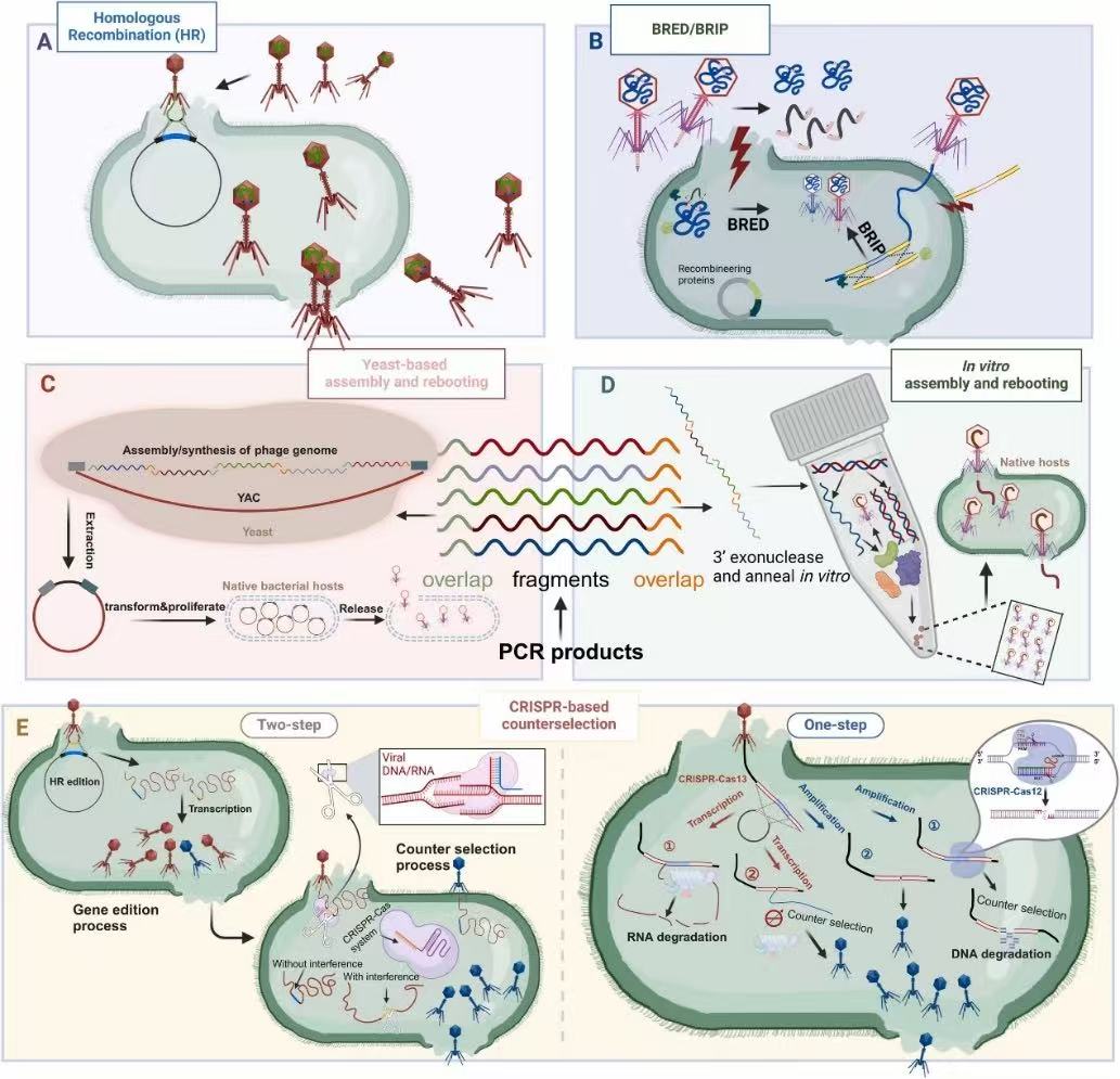 团队基于这一重大公共卫生问题,定量评估了当前KP耐药特征和毒力特点,梳理目前公开报道的噬菌体治疗案例。然而,当前噬菌体治疗因其易产生抗性和宿主范围狭窄的固有限制,阻碍了其在临床的深度推广和应用。针对这一难题,文章总结近年来快速发展的噬菌体基因编辑策略,包括同源重组(HR)、BRED/BRIP 技术、CRISPR-Cas系统及基因组重启(rebooting)工程,为突破噬菌体应用瓶颈提供了新思路与路径(图1)。该综述于 2025 年 2 月 3 日在线发表于 Microbiological Research(IF2024:6.9) DOI: 10.1016/j.biotechadv.2025.108689 .