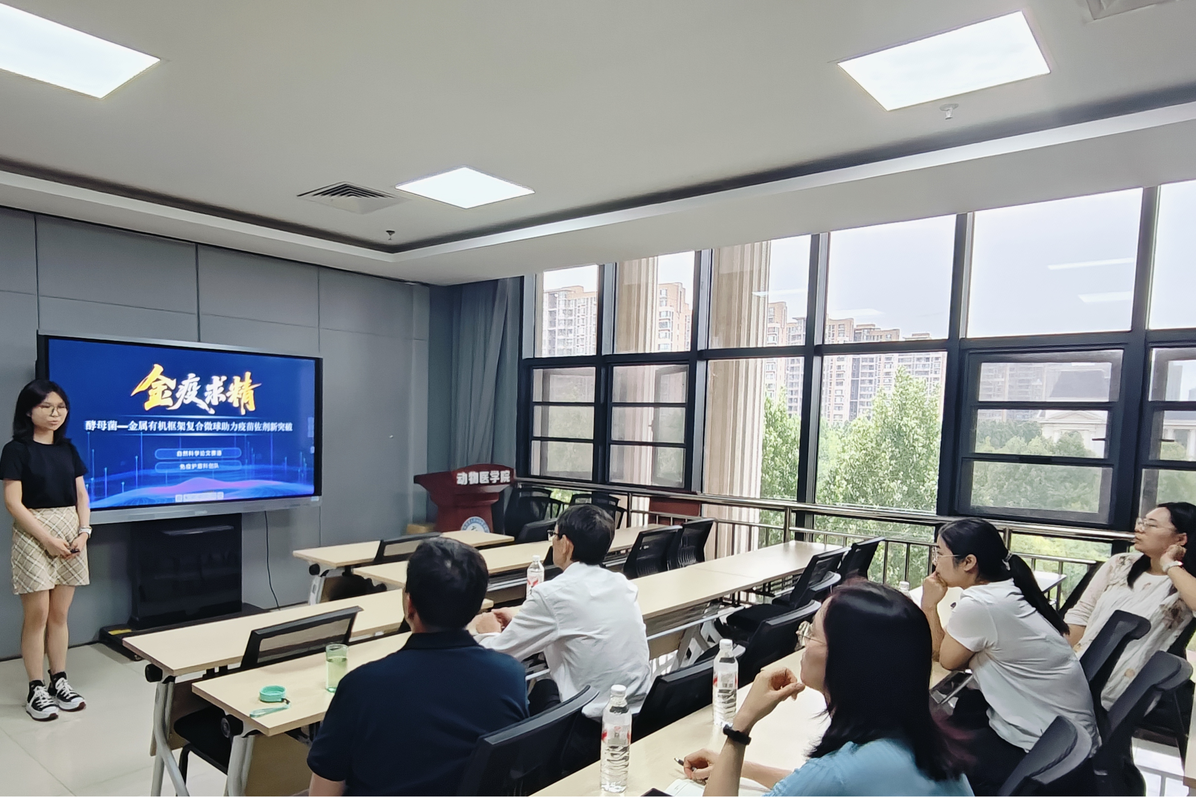 于第一实验楼北二会议室,成功举办2025年“挑战杯”省赛赛前再加力动员会。院党委副书记杜家方、公共卫生系胡慧教授、预防兽医系郑兰兰教授、何华教授和夏璐副教授以及校外专家陈跃龙担任评委并进行指导。