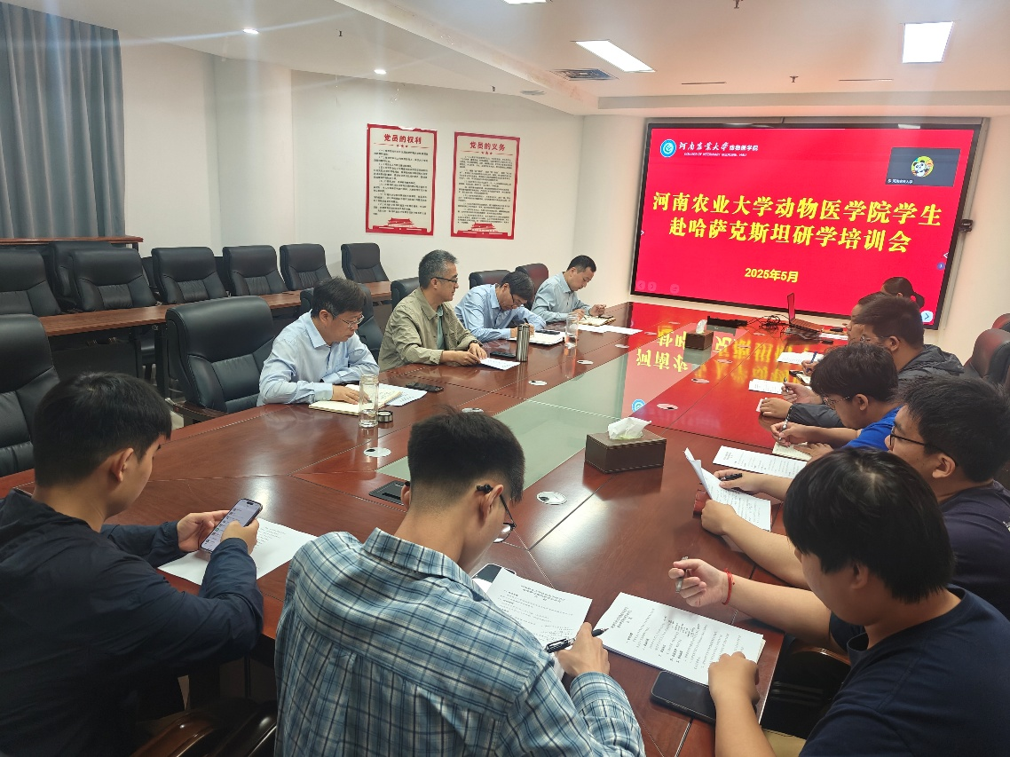 召开2025年研究生赴哈萨克斯坦国立农业研究大学(Kazakh National Agrarian Research University,KazNARU)学习交流行前培训会。哈萨克斯坦国立农业研究大学全球开发部主任Abdramanov Abzal,校国际交流合作处处长屠克,院党委书记廖仲磊,院长魏战勇,党委副书记杜家方,8名参加此次出国学习交流的研究生及导师参加培训。培训会由魏战勇主持。
