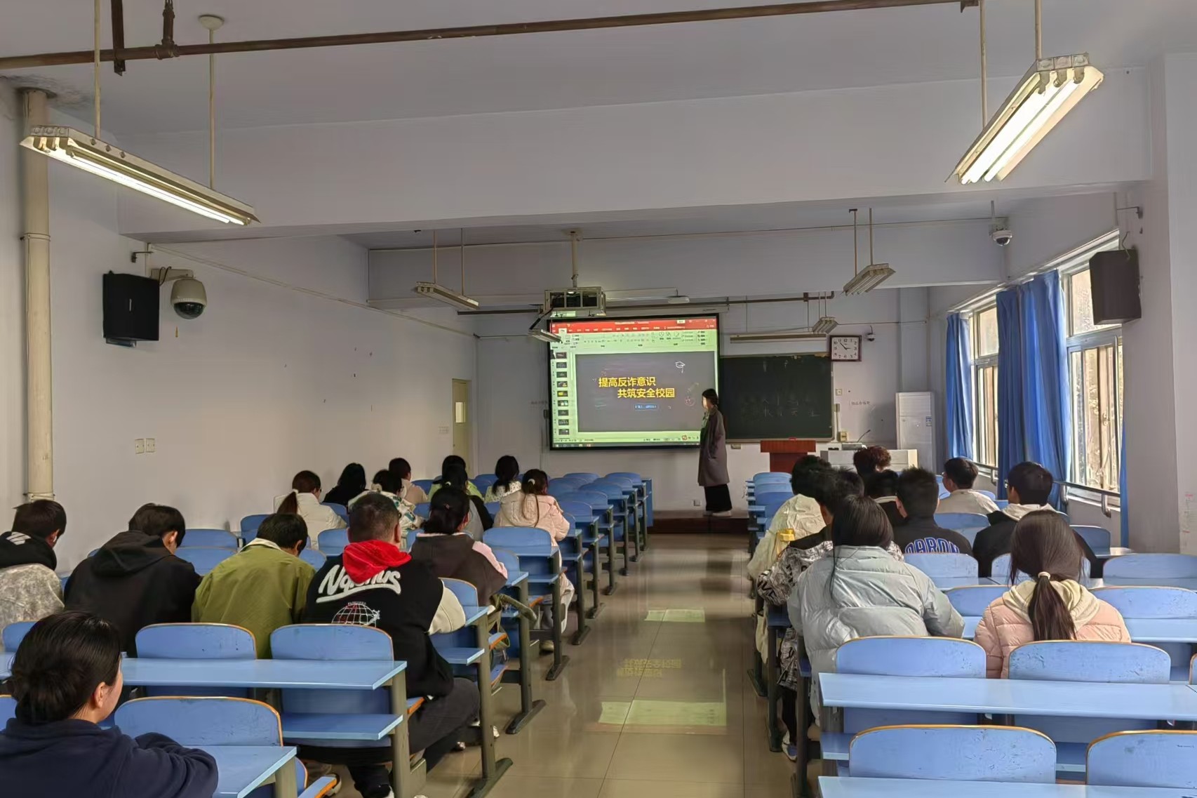 防诈同心,平安同行。学院各班级创新班会形式,采用PPT宣讲,视频警示片,诈骗套路情景剧等生动方式向学生普及“刷单返利”“冒充客服”“虚假投资”“网络交友”等常见骗局的特点和防范技巧。 班长支书从身边的具体事例讲起,诡计多端的诈骗套路,触目惊心的诈骗金额,庞大的被骗人数,无一不警醒同学们提高对反诈工作的重视,了解诈骗套路,学习反诈知识,为反诈工作注入强劲力量。