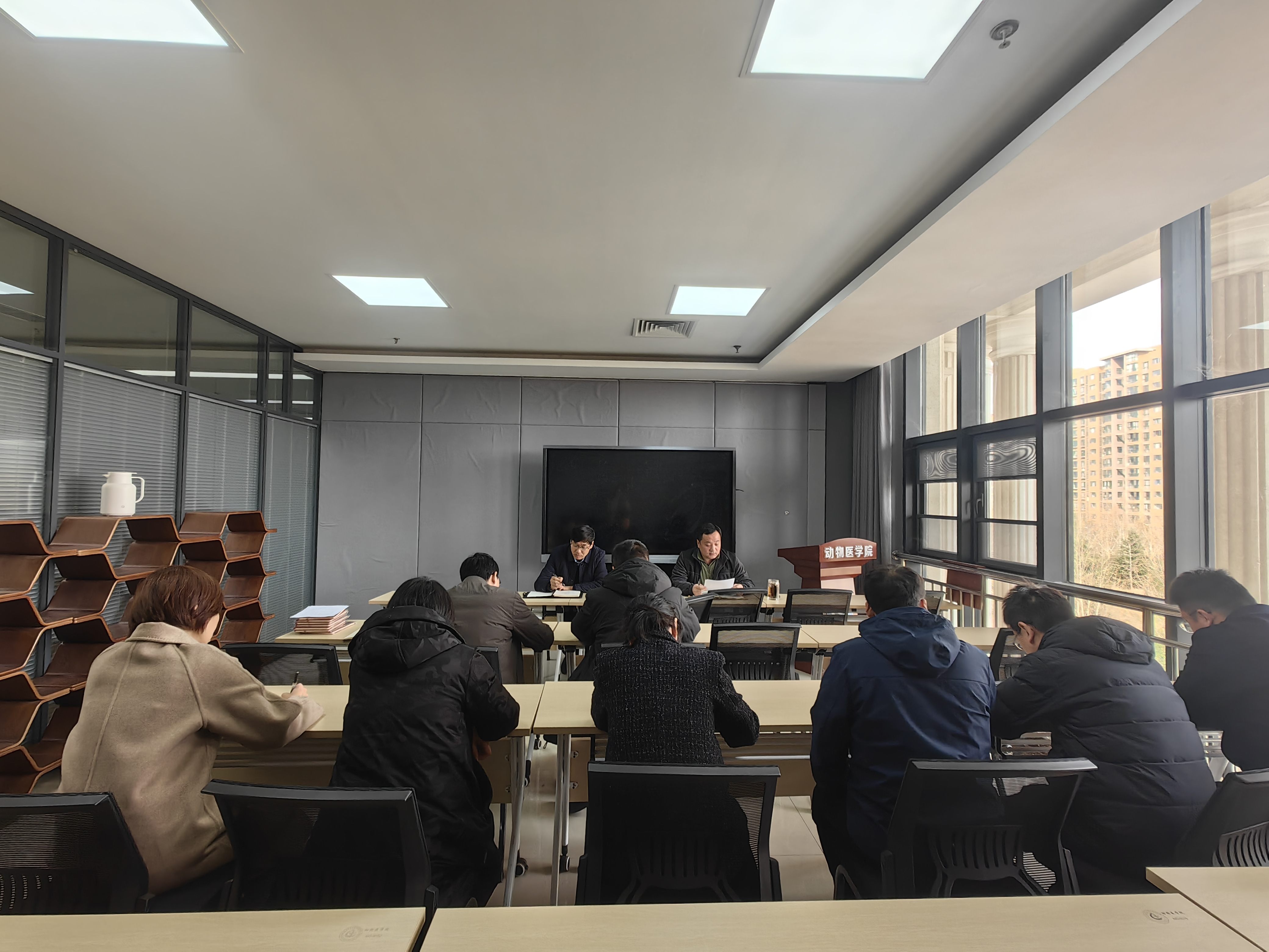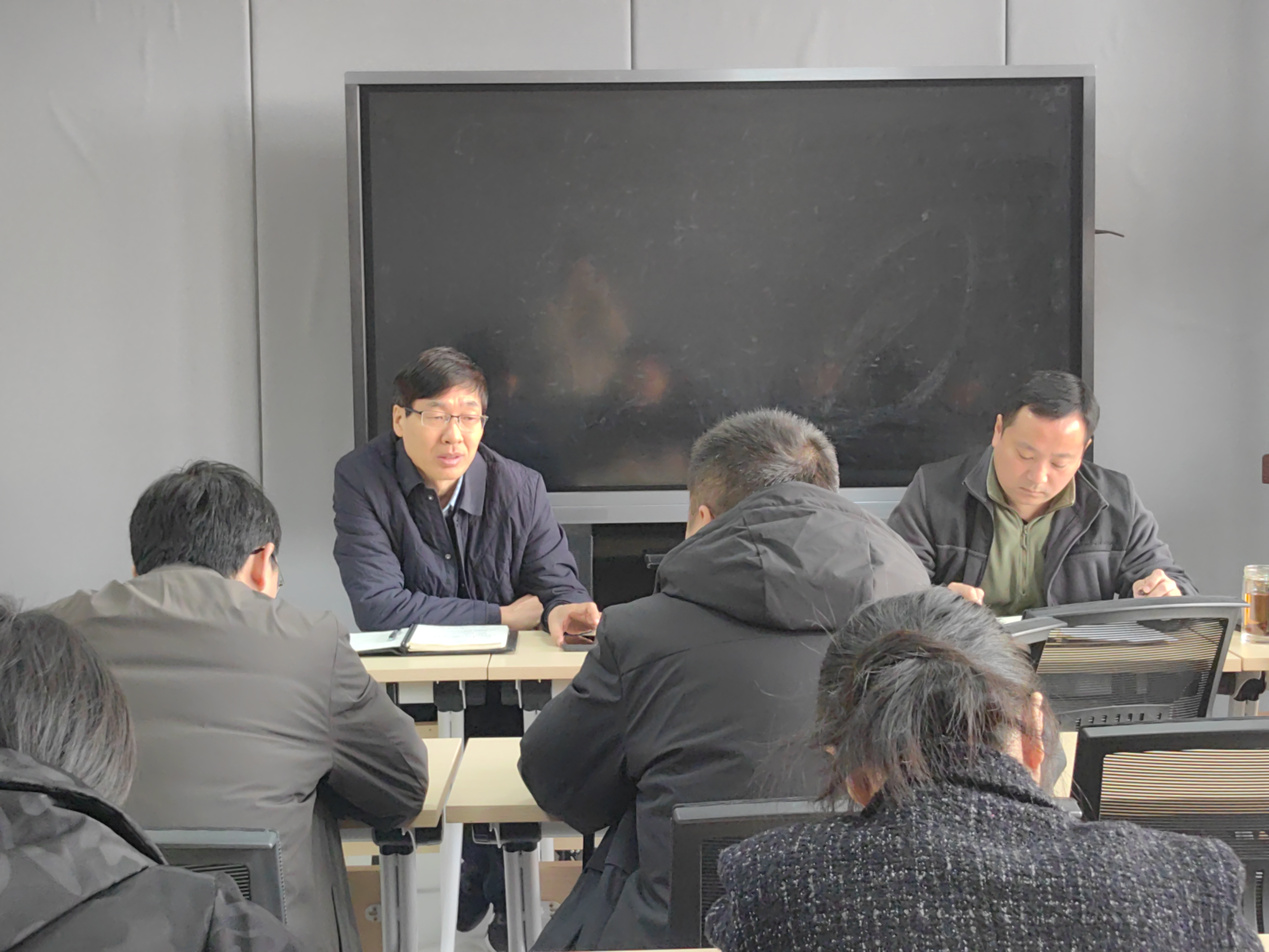 在第一实验楼北2会议室召开2025年度教工党支部书记座谈会。院党委书记廖仲磊、党委副书记杜家方和组织员冯佟出席会议,上届和本届教职工党支部书记参会。