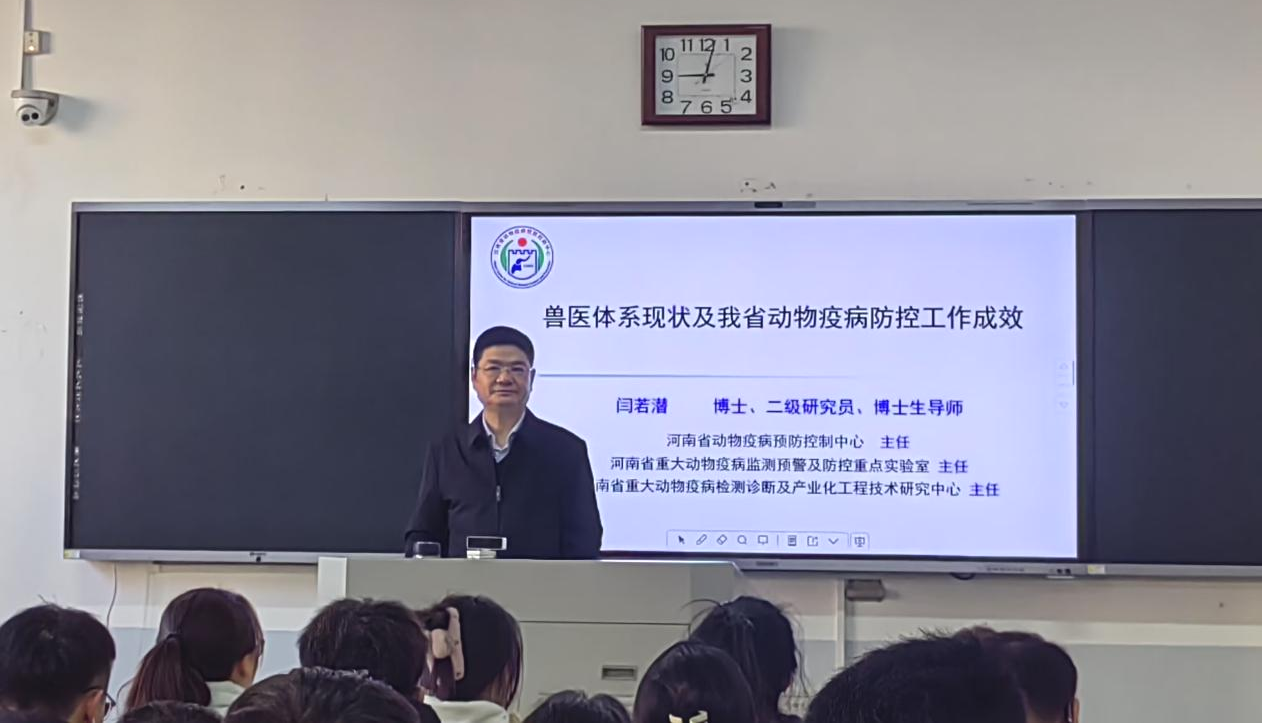 院长张龙现邀请,河南省动物疫病预防控制中心主任闫若潜研究员,在教学楼D205以《兽医体系现状及我省动物疫病防控工作成效》为题为禁漫
