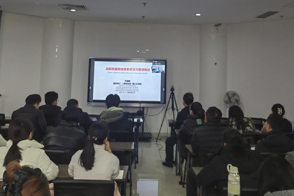 院长张龙现教授邀请,中国兽医协会常务副会长兼秘书长辛盛鹏研究员,在第一实验楼北530会议室以《当前我国兽医体系状况与管理概述》为题为禁漫