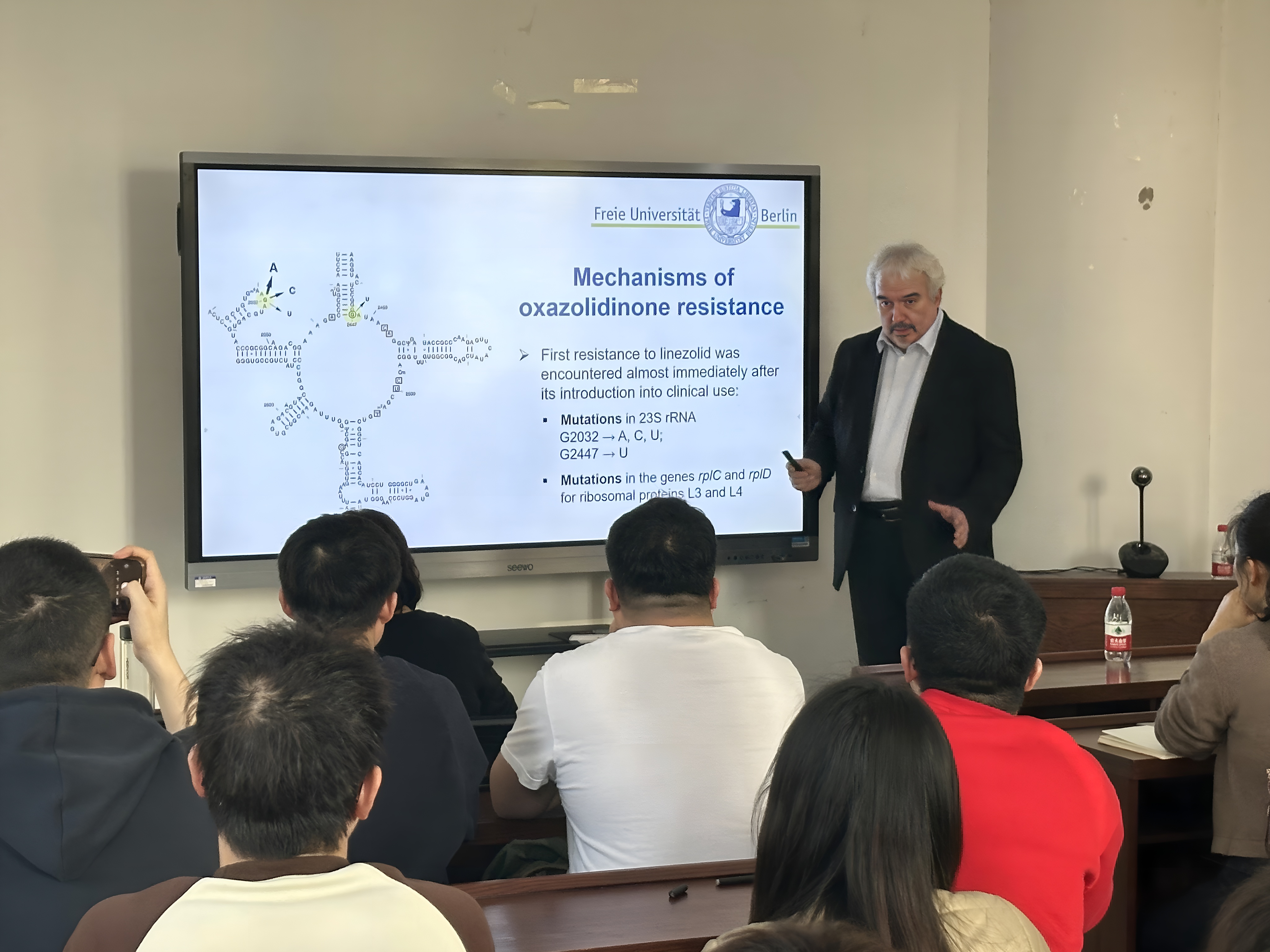 师生带来了题为“Genetics of mobile oxazolidinone resistance genes among bacteria from humans and animals”的精彩报告,学院教师和研究生参加了报告会。