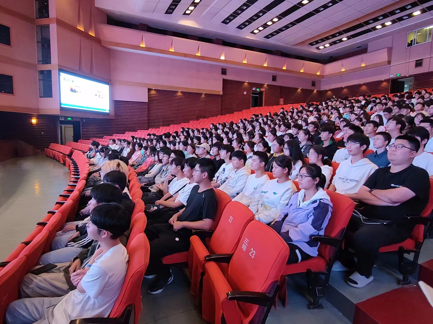 创新创业大赛优秀参赛选手21级学生邵汉城、郭子涵,院学生会创新创业部成员及23级全体新生参加活动,活动由学生会创新创业部秦艺文主持。