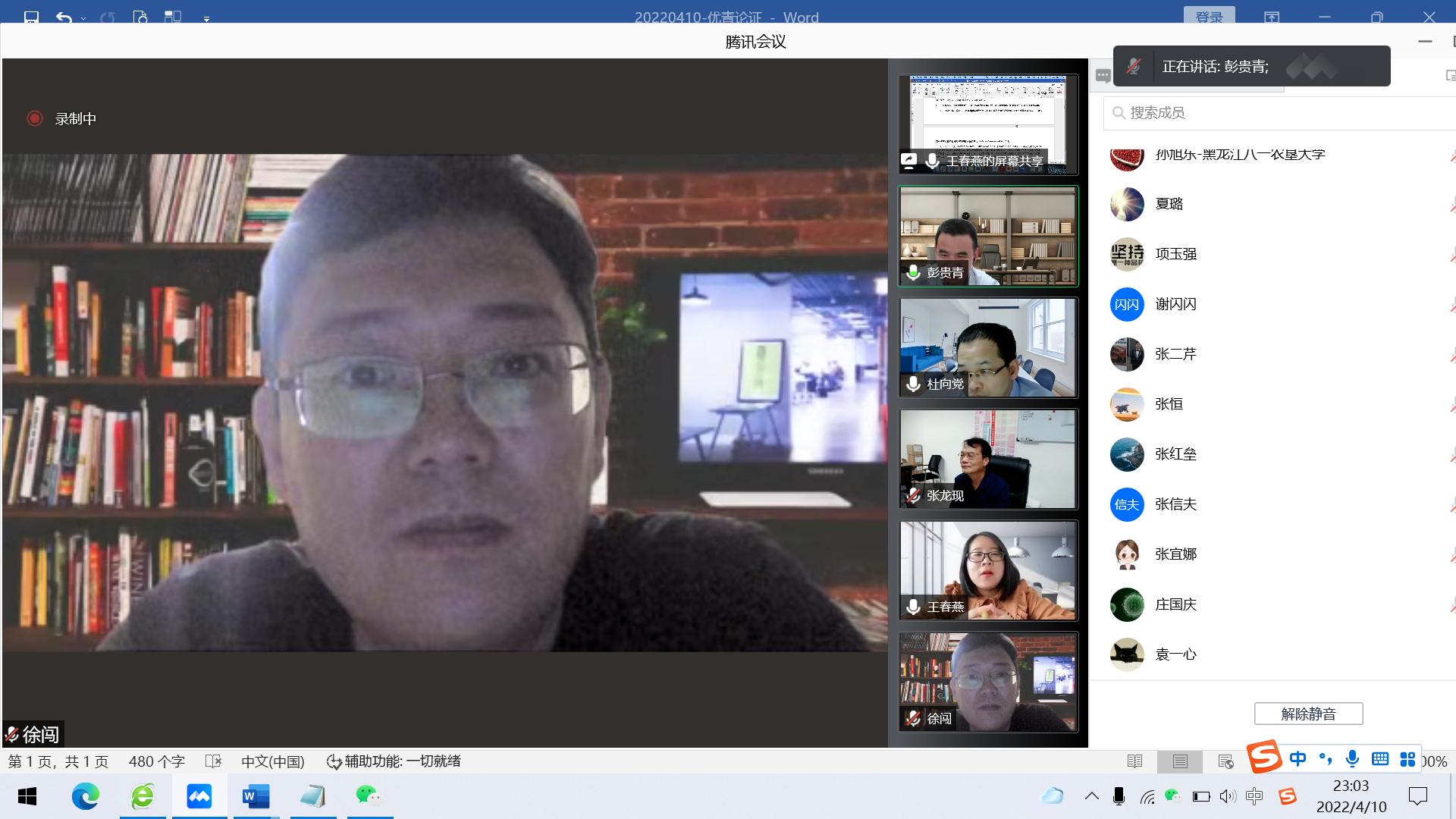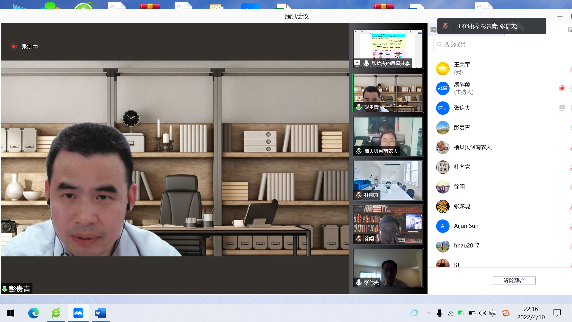 使用腾讯会议在线举行2022年度国家自然科学基金海外优青项目申报论证会。中国农业大学国家自然科学基金杰青获得者徐闯教授、华中农业大学国家自然科学基金杰青获得者彭贵青教授受邀对禁漫