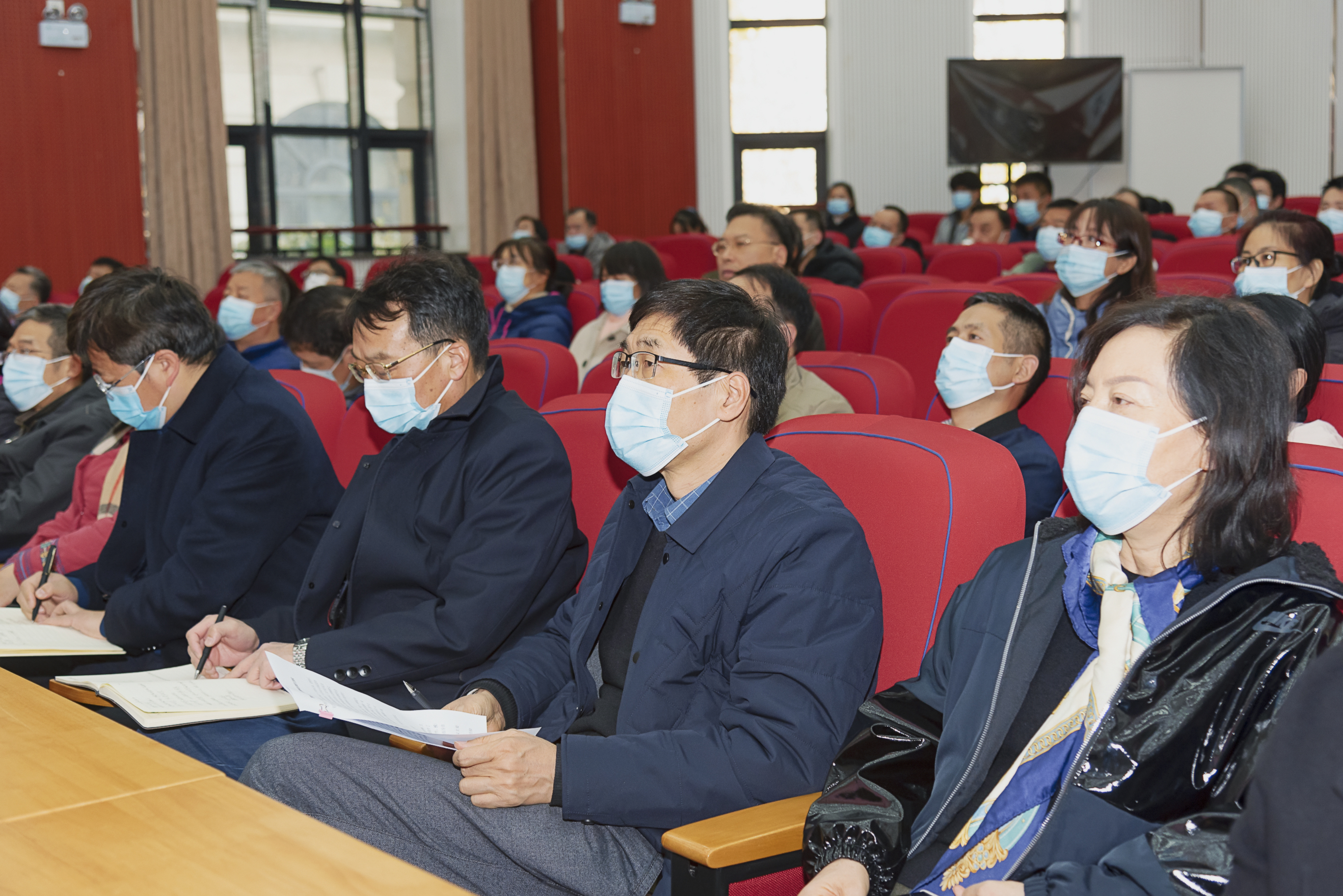 全体教工、学生党支部委员参加宣讲。报告会由院党委书记廖仲磊主持。