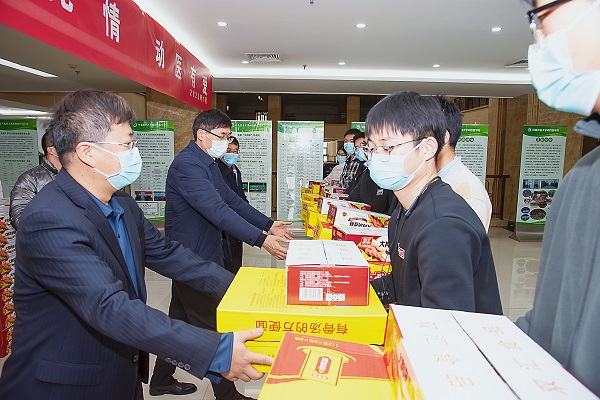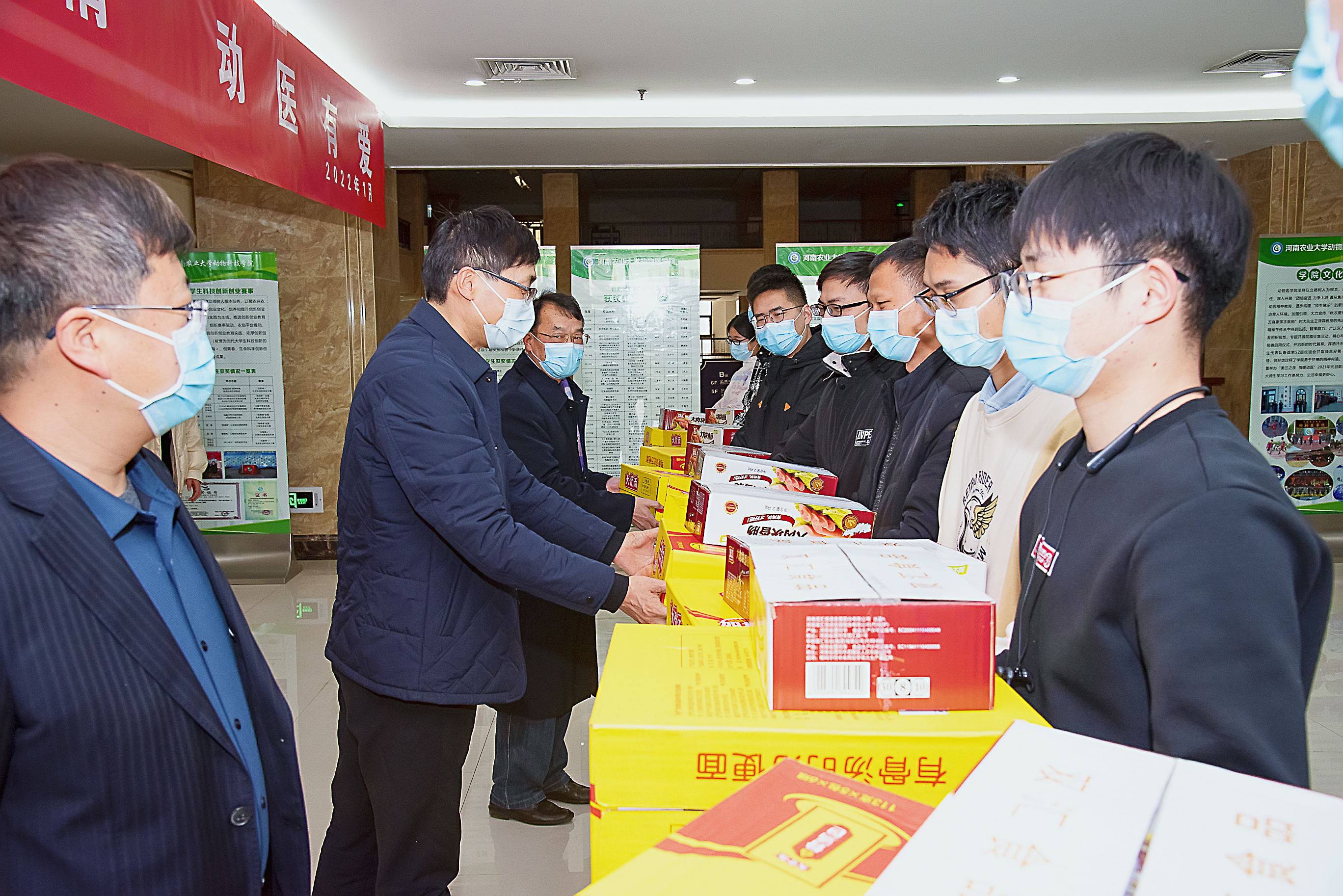 响应学校的号召,在第一实验楼四楼大厅为留校学生发放生活物资,保障留校学生生活所需。院党委书记廖仲磊、院长张龙现、副院长魏战勇与学生亲切交谈,为他们送去严寒中的缕缕温暖。