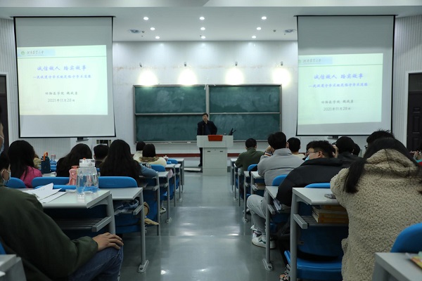 于教学楼大教室二举办“诚信做人 踏实做事——浅谈遵守学术规范恪守学术道德”专题讲座,副院长魏战勇为全体2021级研究生作专题讲解。会议由杜海利主持,禁漫