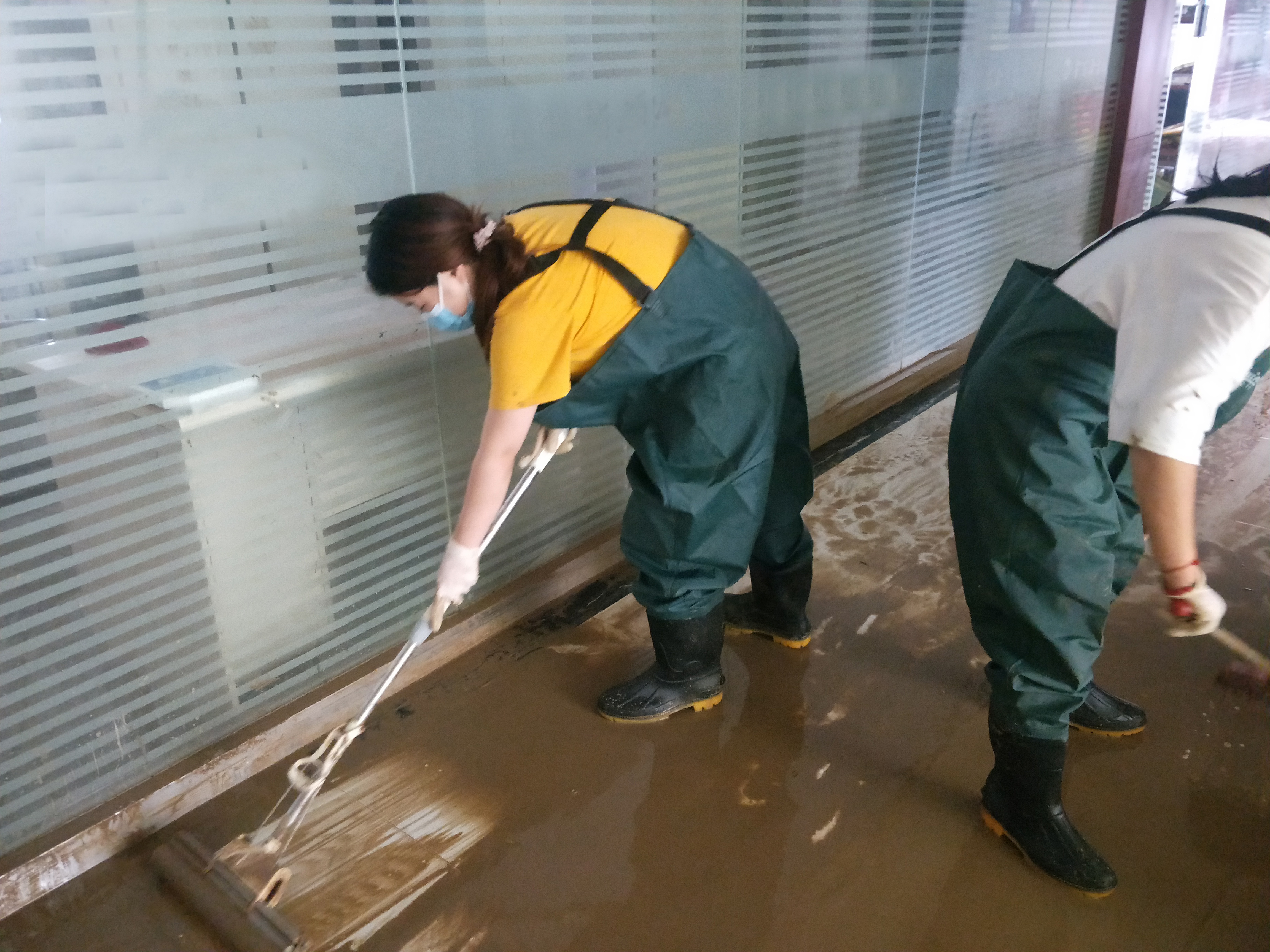 吴亚楠老师所在的河南省开封市通许牧原十四场区,于20日晚上笼罩在风雨雷电之中,仓库开始漏水、险情频发。作为实习带队老师,吴亚楠保证学生安全的同时,带领男生帮助企业搬运物资,减少了因洪灾引发的损失,还主动为场区驻守的抗洪人员运送食物。商艳红老师所在的原阳河南花花牛畜牧科技有限公司,犊牛圈被淹,需要紧急转移犊牛。商艳红带领实习学生参与到转移犊牛的行动中,共转移犊牛70余头,确保了场区犊牛的安全。宋亚鹏老师所在的河南省动物疫病预防控制中心也遭到了暴雨的考验。宋亚鹏带领男生们挥动着铁锹,用泥土袋在门口拉起了一道防洪屏障;女生们拧干拖把,用簸箕和水桶清理掉实验室的渗水,尽最大力量保护实验室内的仪器及样品。项玉强和王彦彬老师所在的豫北某饲料添加剂厂受损严重。两位老师第一时间协调救灾物资,以保证实习生们的饮用水和食物供应,并指导实习生分工协作地帮助场区清理淤泥、转移实验室样品,以减轻企业在洪灾中的损失。