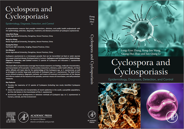 张龙现教授团队,于近日(2021年4月21日)正式出版了世界上第二部关于环孢子虫的著作《Cyclospora and Cyclosporiasis》,该专著由世界著名的爱思唯尔(ELSEVIER)出版集团旗下学术出版社(ACADEMIC PRESS)出版。该书籍系统介绍了环孢子虫的发现和研究历史,已鉴定的有效种类,环孢子虫的生活史,分子特性及全基因组学特征,环孢子虫病引起的主要临床症状和病理变化,流行病学特征及风险因素分析,检测方法,药物治疗和预防措施等等。该英文著作由禁漫