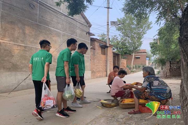 团队成员们走上前热情的与乡民打招呼,为老人们送上一些水果和礼品。看到前来拜访的团队成员,老人们也非常开心地与团队成员们亲切交流。谈到近年来的生活变化,老人指了指身后的小楼房说:“你看这楼房盖起来,年轻人都出去挣钱了。我们就在家干点轻活带带小孩,清闲的很哩。”听到老人的话,大家心里的万千感慨都汇做成脸上的笑容,在助力扶贫的同时为空巢老人和留守儿童带去温暖是这次活动的意外收获。
