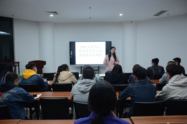 在实验楼北530举行研究生学生干部素质提升培训会,本次培训会由辅导员杜海利主讲。2018级研究生班级委员及院研究生会全体人员参加培训会。