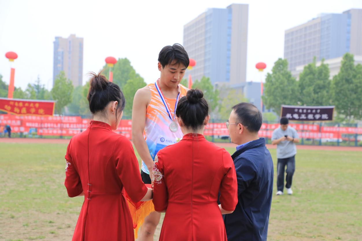 田赛项目同样捷报频传。曹俊豪同学在男子标枪比赛中沉着应战,凭借稳定的技术发挥夺得第二名,展现了良好的力量与技巧结合。杨天翔同学在男子跳高比赛中获得第七名,李向阳同学在男子跳远项目中获得第八名。每一位站上赛场的同学,都是动医精神的传承者——他们不惧强手,敢于亮剑,用实际行动诠释了“更高、更快、更强、更团结”的体育追求。